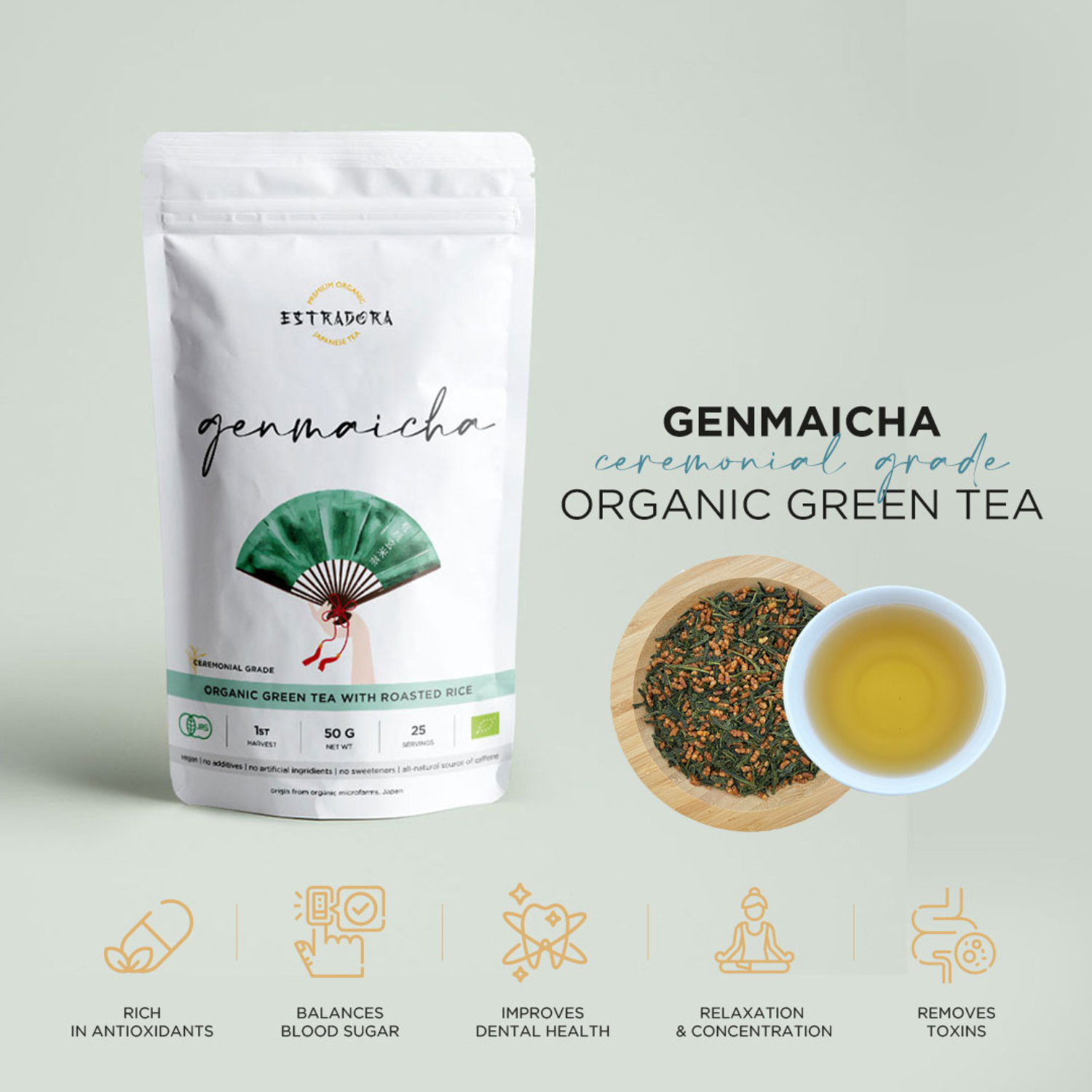 Roasted Green Tea — Calm, Toasted, Naturally Low in Caffeine.